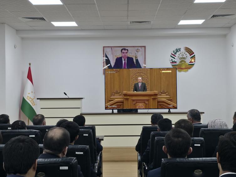 Сегодня, 16 декабря 2025 года, в Верховном Суде Республики Таджикистан состоялся коллективный просмотр Послания Основателя мира и национального единства – Лидера нации, Президента Республики Таджикистан уважаемого Эмомали Рахмона Маджлиси Оли Республики Таджикистан.